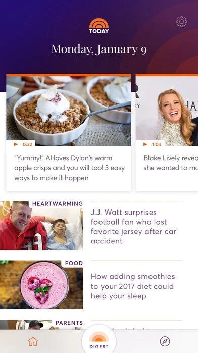 I based the home screen visuals on popular news apps to reinforce the fresh content.